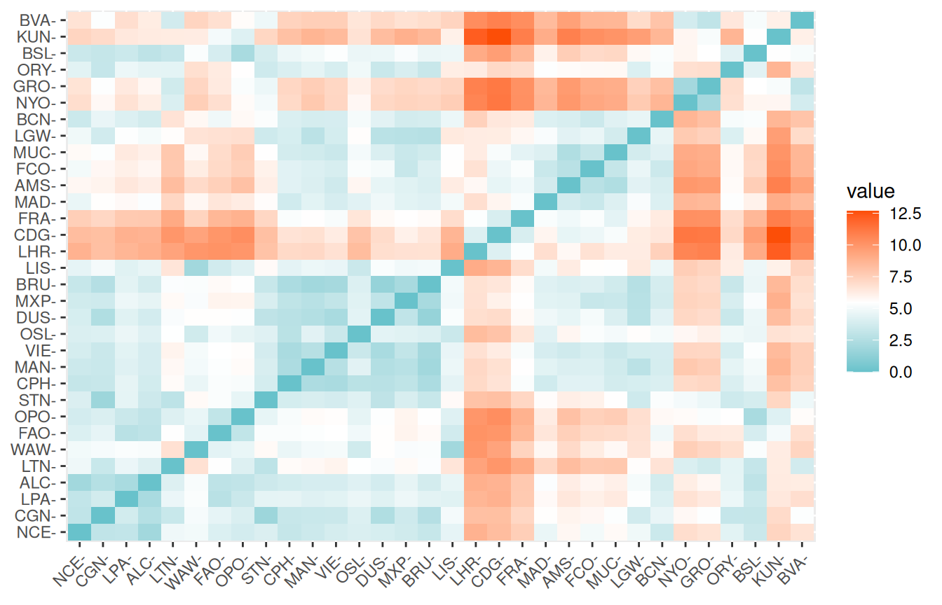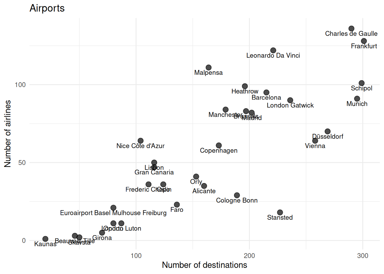 theme_minimal()Imagine that one of the airports was not operating any more.