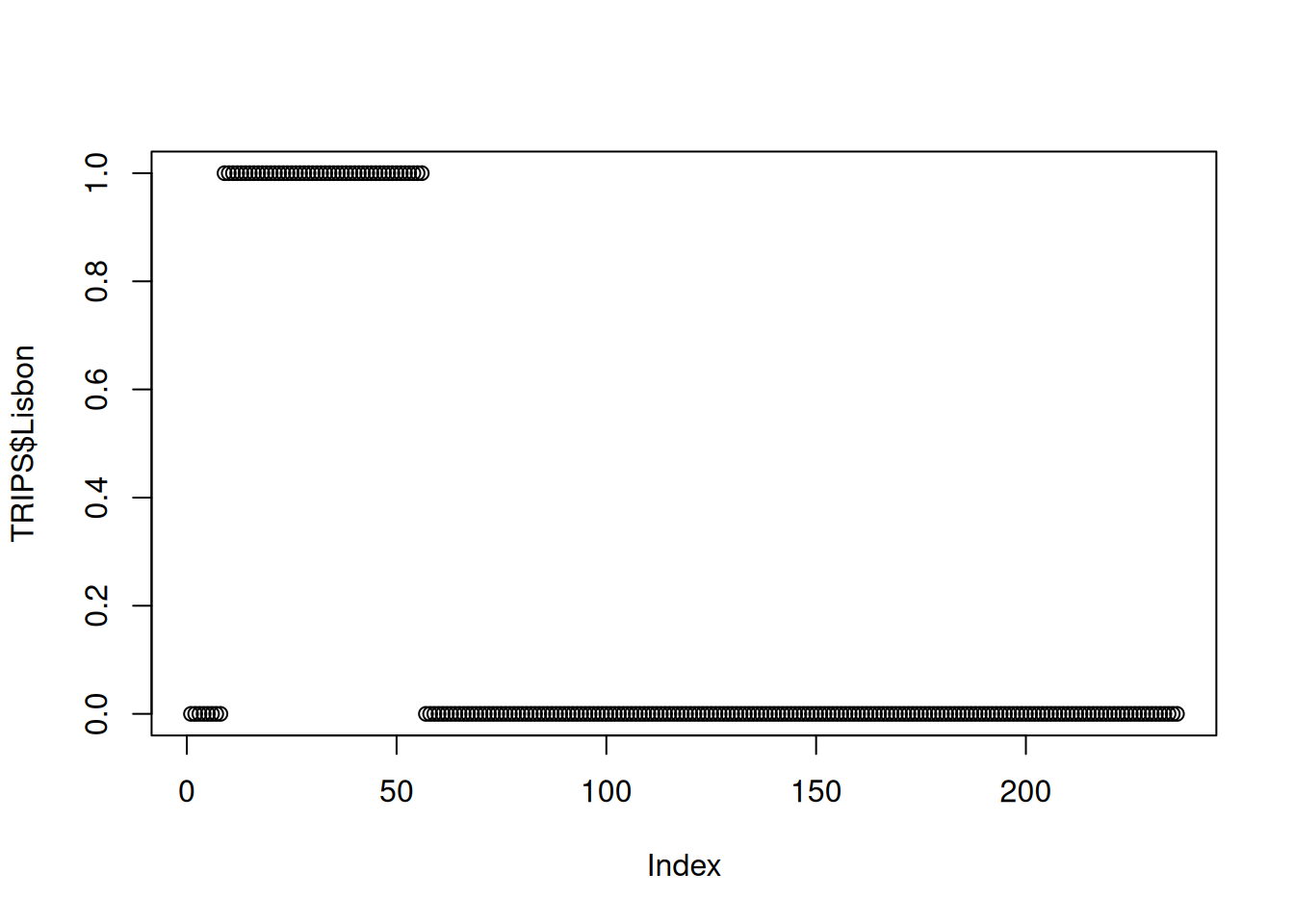 unique(TRIPS$Lisbon) # this will show all the different values[1] 0 1