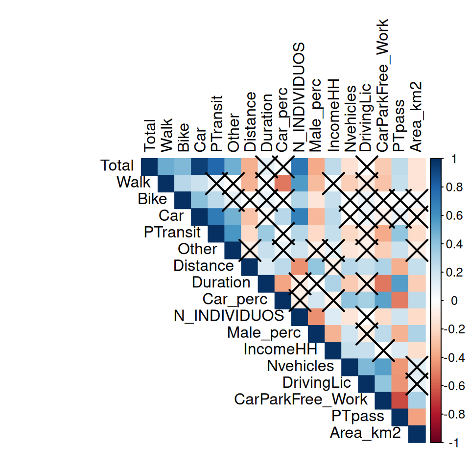 corrmat Total Walk Bike Car PTransit Other Distance Duration