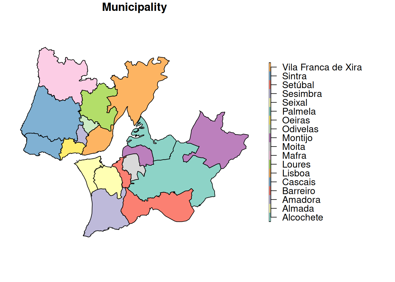 url = "https://github.com/U-Shift/EITcourse/raw/main/data/Municipalities_geo.gpkg" Municipalities_geo = st_read(url)