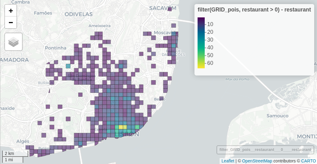 mapview(GRID_pois, zcol = "restaurant") # for instance